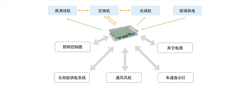 物联网盒子SIoT box是一套以前端供电监控为基础节点,多重网络为脉络,多平台软件为大脑的物联网运维管控平台。物联网盒子SIoT box基于物联网终端自组网的形式,串联各种电子设备,通过对电子设备(如监控设备、交换机、路由器、光端机、照明控制设备、太阳能供电设备、车道指示灯等等)的供电情况和网络情况进行监测控制并及时对设备异常情况进行报警,提高设备在线率,减少人工操作。平台的拓扑结构如下所示: